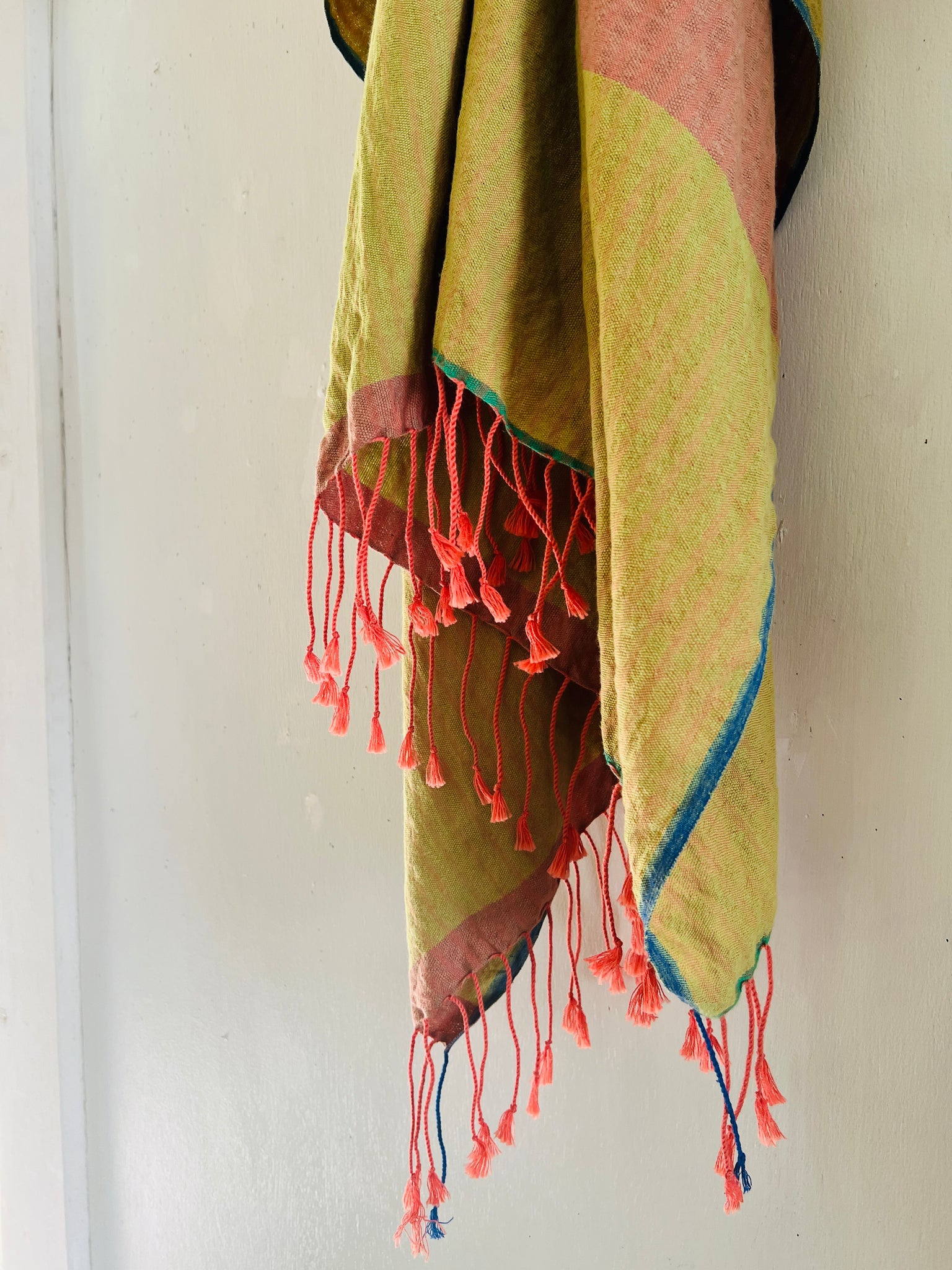 *クロマーは全てカンボジアの女性たちの手により丁寧に手織りされています。手織り布のもつしなやかな風合いは格別で、使うほどに心地よさが増していきます。年齢性別問わず、通年お使いいただけます。