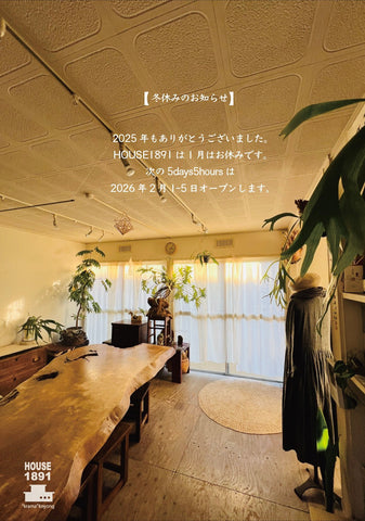 HOUSE1891の2階の個室は、WSやセッションのためのお部屋です。5days5hoursでは、5日間、毎日違うセラピストさんによる、心身を軽やかにするセッションや、限定のWSを受けていただけます。風が通り抜け、白いカーテン越しの光が心地よい空間で、ゆっくりお寛ぎください。